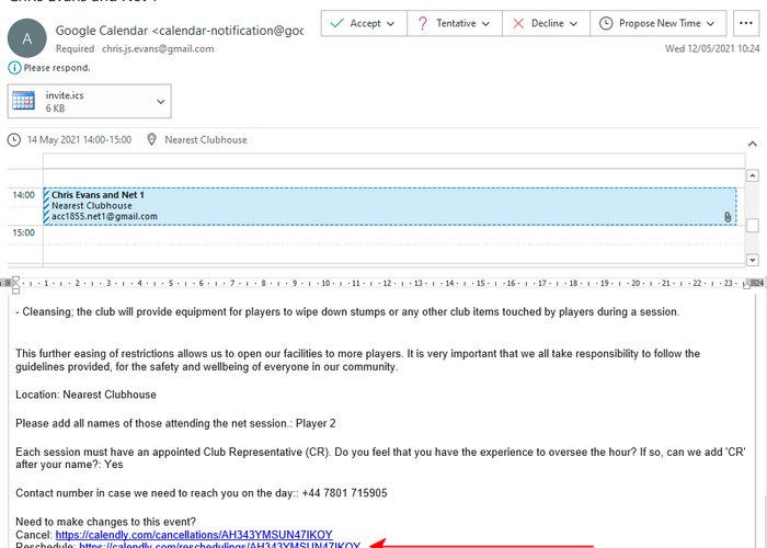 CLICK ON RESCHEDULE IN ORIGINAL E-MAIL